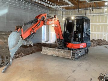 This is our medium excavator with a 11' dig depth and weighs approx 10,000lbs. This machine has an attachable hydraulic jackhammer.