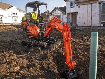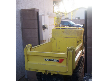 This is our smallest excavator with a 7'7" dig depth and weighs approx 4,000lbs. The machine tracks shrinks down to only 39" wide so it can fit through a 42" gate.